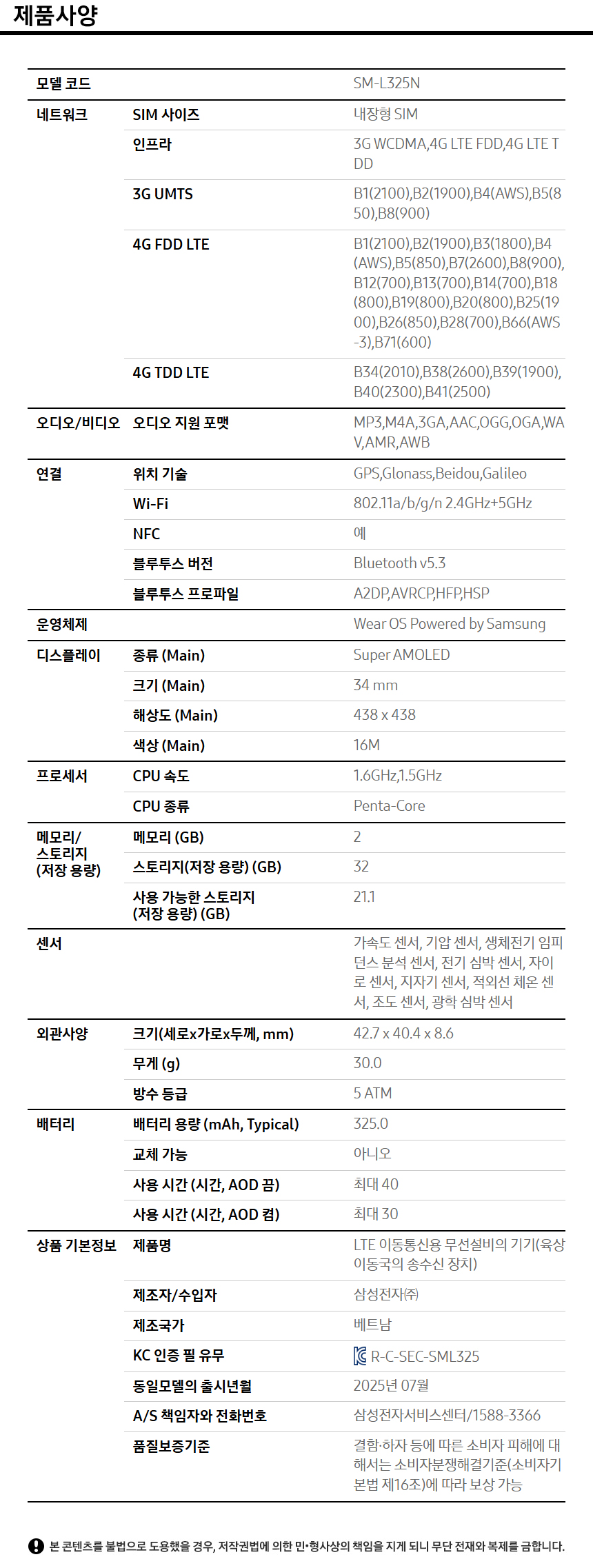 | KC 안전 인증 | [방송통신기자재] 적합인증 대상 품목으로 아래의 국가 통합인증 필함.인증번호 : R-C-SEC-SML325인증일자 : 2025-07-01(해당 인증 검사 정보는 판매자가 직접 등록한 것으로 등록 정보에 대한 책임은 판매자에게 있습니다.) |